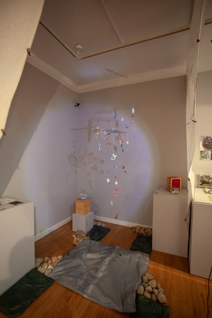 The space granted the audience opportunities to experience and discover the environment while reflecting on human impact on the planet. The floor was unstable and reacted to the pressure of human footprints.