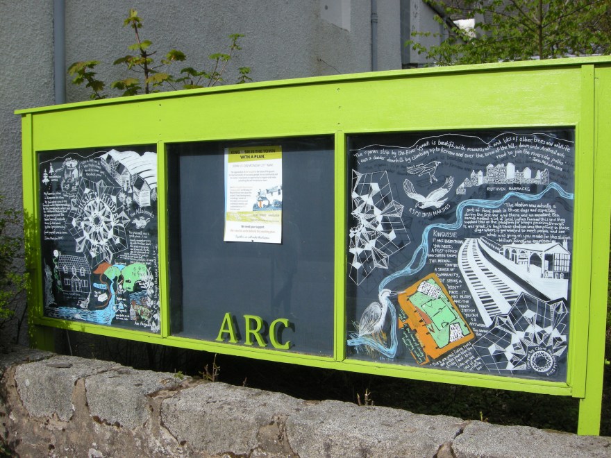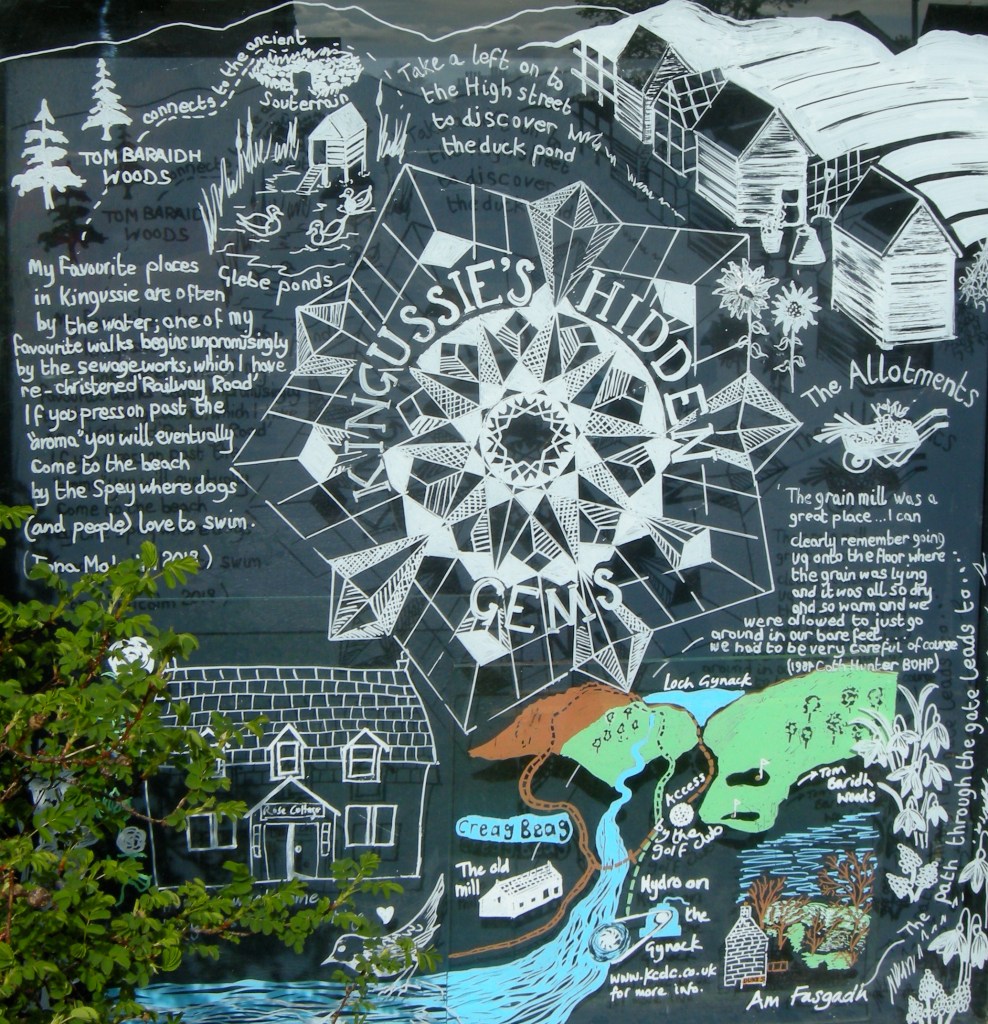 Regeneration of the public notice board for the Am Fasgadh Regeneration Company. In collaboration with the community of Kingussie the project highlighted the hidden gems of the village for visitors. It continued to provide a platform to share information on the project’s progress for three years until the site was sold.
