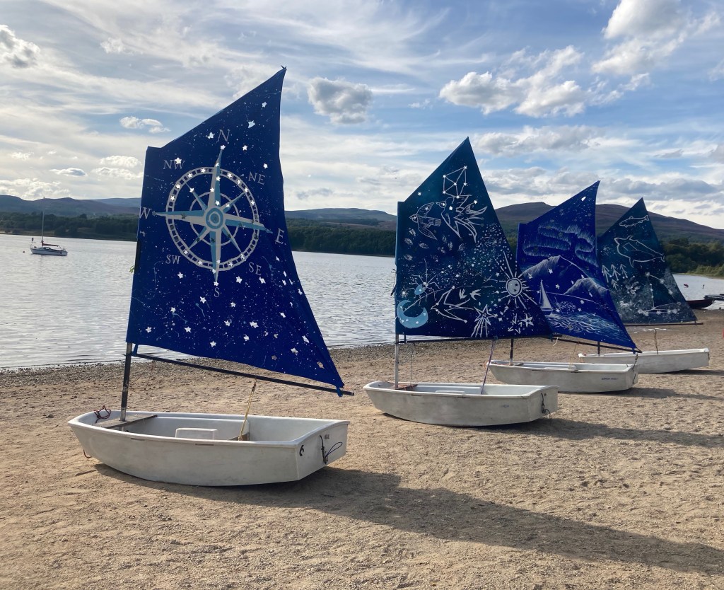 The Star Sails were created by several groups of participants as a backdrop for the film and as a legacy project for the venue. Symbols from land and star maps were used to highlight navigation as a theme.