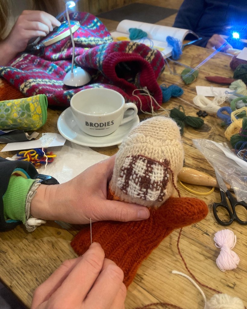 In the winter of 2023 I was awarded funding from the Cairngorms Trust to deliver a series of mending workshops to communities in the Cairngorms National Park. The project aimed to bring people together in the dark winter months to reduce isolation, learn new skills and show others what they had learned.