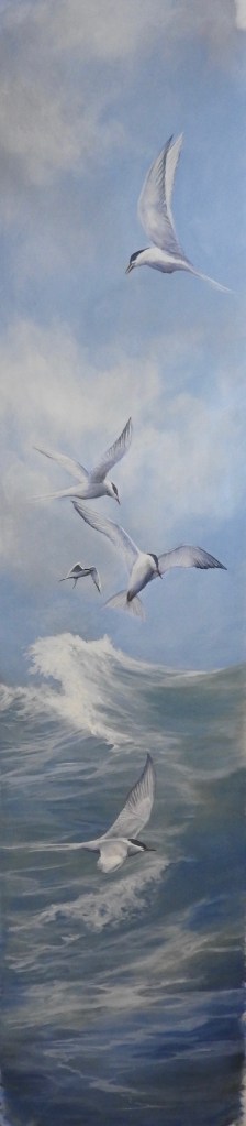 Spring wall, Artic terns and Kyleakin with Saucy Mary’s Castle, various sizes, acrylic.